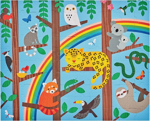 Deze hoogwaardige kinderpuzzel biedt twee unieke designs met vriendelijke jungle-dieren. Met 49 stukjes is hij ideaal voor kinderen vanaf 5 jaar, die tijdens het puzzelen hun concentratie en oog voor detail trainen. De praktische reisverpakking maakt het makkelijk om het plezier overal mee naartoe te nemen.