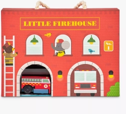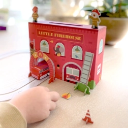 Deze creatieve Little Firehouse speelset maakt alle kleine hulpverleners blij. De dubbelzijdige kartonnen brandweerkazerne, het opwindbare houten autootje en de set met parcoursdelen en accessoires zorgen voor een realistische basis voor spannende speelscenario’s. De onderdelen zet je eenvoudig in elkaar en in no-time is alles klaar voor actie.