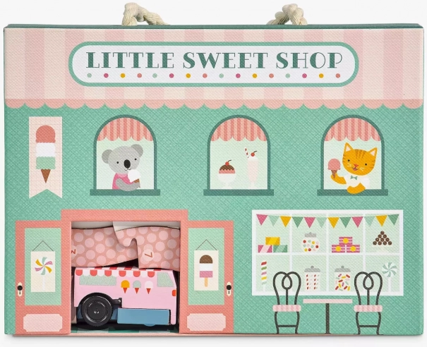 Deze schattige speelset neemt kinderen mee naar een wereld vol zoetigheid en fantasie. Wind de ijskar op, kijk hoe hij rond de ijssalon rijdt en verzin je eigen verhaaltjes. Dankzij de compacte afmetingen en het praktische handvat is hij perfect voor op reis.