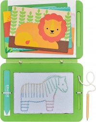 Gemaakt van gerecyclede materialen en bedrukt met plantaardige inkten, wat niet alleen voor plezier zorgt, maar ook een minimale impact op het milieu heeft. Na het tekenen gebruikt u eenvoudig het wisvlak op de achterkant om het bord klaar te maken voor een nieuw meesterwerk.