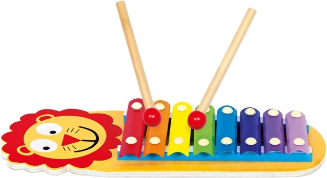 - Xylofoon in de vorm van een leeuwtje, 2 houten stokjes (3-delige set)