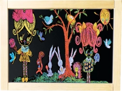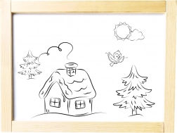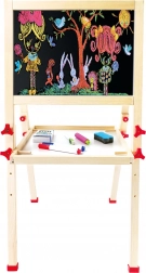 In de verpakking zit alles wat nodig is: krijt, stift, spons en meerdere magnetische afbeeldingen. Het bord is snel in te klappen en ruimtebesparend op te bergen, zodat het weinig plaats inneemt. De twee werkvlakken maken het mogelijk dat twee kinderen tegelijk kunnen creëren.