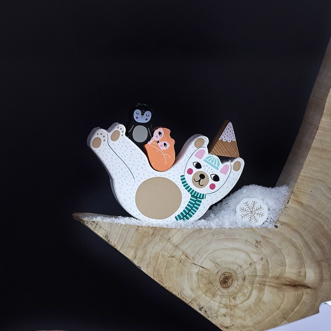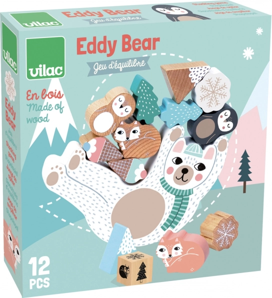 Schattig houten balansspel met beertje Eddy dat fijne motoriek, geduld en coördinatie ontwikkelt. Gooi met de dobbelsteen en leg volgens de kleur sneeuwvlokken, poolvossen, pinguïns, bergen of ijsjes op het buikje van de beer. Wie de toren het langst in evenwicht houdt, wint! Ecologisch geproduceerd, geïllustreerd door Michelle Carlslund.