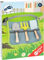 Het schepje, de hark en de spade in kinderformaat zijn gemaakt van duurzaam metaal. Gladde houten handvatten liggen goed in kleine handen en zorgen voor een stevige grip.