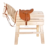 Geef kinderen de rijervaring met een zadel- en hoofdstelset die elk houten of hobbelpaard verandert in een trouwe partner voor ritjes. Het zadel van duurzaam materiaal heeft een zachte, comfortabele padding en metalen stijgbeugels met verstelbare stijgbeugelriemen, zodat kinderen gemakkelijk de juiste lengte vinden.