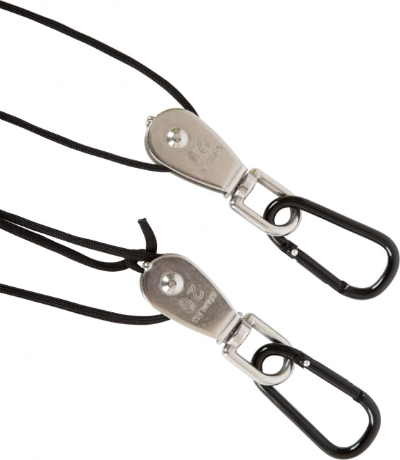 Praktische karabiners maken snelle bevestiging aan een balk, haak of noodverankering mogelijk – zonder gereedschap, in een handomdraai.