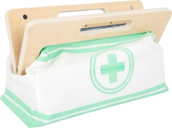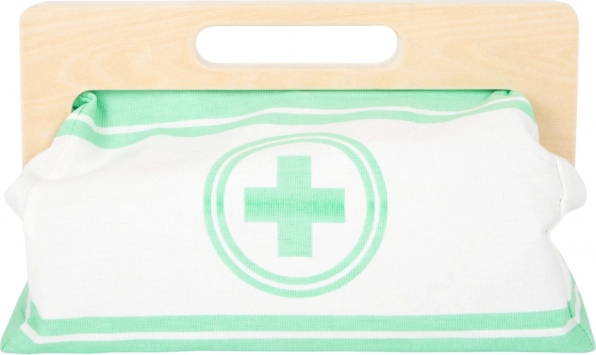 Deze zorgvuldig vervaardigde doktersset combineert natuurlijk hout en kwalitatief textiel tot een veilige en leuke speelgoedset voor kinderen vanaf 3 jaar. De praktische tas met magnetische sluiting houdt alle instrumenten bij elkaar en is dankzij het opvallende groene kruis altijd makkelijk terug te vinden.