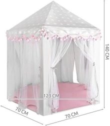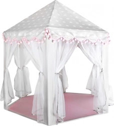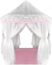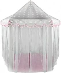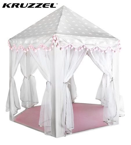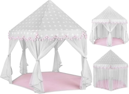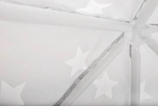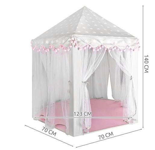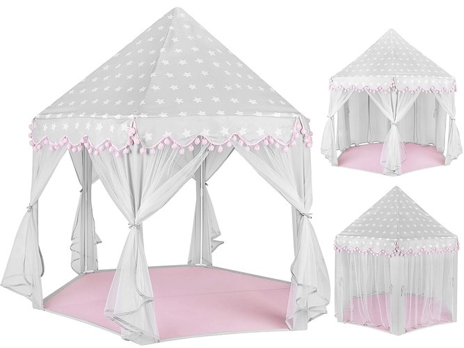 Creëer voor kinderen een veilige hoek voor ontspanning en fantasierijk spel. De tent heeft een kegelvormig dak, 6 open ingangen met lichte, ademende gordijntjes en een stijlvol grijs‑roze design met sterren dat past in de kinderkamer of speelhoek. Dankzij de lichte klikconstructie zet je hem in een handomdraai op en verplaats of berg je hem net zo makkelijk op.