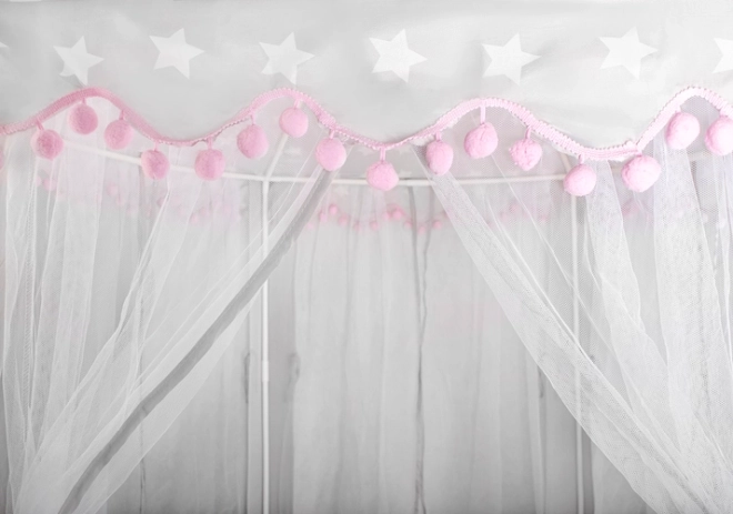 De ruime onderlegger en luchtige zijwanden zorgen voor comfort voor één of meerdere kinderen – er is plek voor veel kussens, knuffels en boekjes. De tent is ideaal voor binnen en in de tuin onder toezicht van volwassenen. Decoratieve pompons en de mogelijkheid om de gordijntjes vast te strikken geven het spel flair én privacy.
