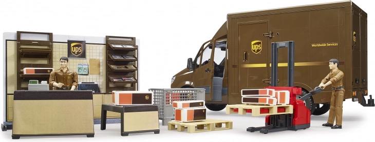 De logistieke basis van de Bruder-wereld wordt nu uitgebreid met een unieke set met een UPS-winkel. In deze winkel kunnen klanten: