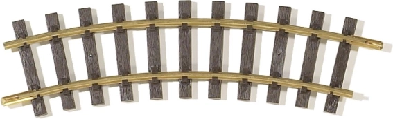 Perfect afgewerkt bochtspoor met gedetailleerde weergave van houten dwarsliggers in realistische kleuren. Geschikt voor modelspoorbanen in verschillende schalen.