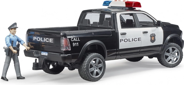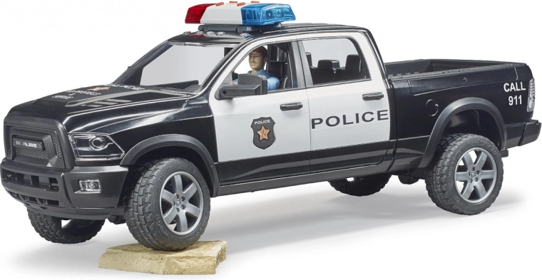 De BRUDER RAM politie pick-up brengt kinderen authentieke actie en veel speelmogelijkheden. Dankzij de robuuste constructie van hoogwaardig ABS-plastic, realistische details en functionele elementen kan hij elke missie aan – van stads patrouilles tot inzetten in bos of bergen.