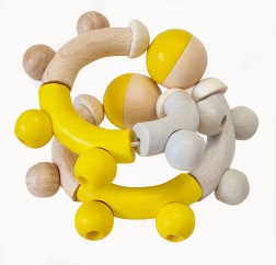 Hess houten rammelaar in gele kleur is ideaal voor de ontwikkeling van de motorische vaardigheden van je kind. Gemaakt van hoogwaardig, ecologisch verwerkt hout en biedt creatieve mogelijkheden dankzij acht onderdelen aan een elastisch koord.