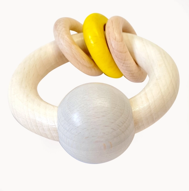 Houten rammelaar voor je kind helpt de eerste motorische vaardigheden te ontwikkelen en is de ideale metgezel zowel thuis als onderweg. Alle materialen zijn speekselbestendig, wat het speelgoed beschermt tegen beschadiging.