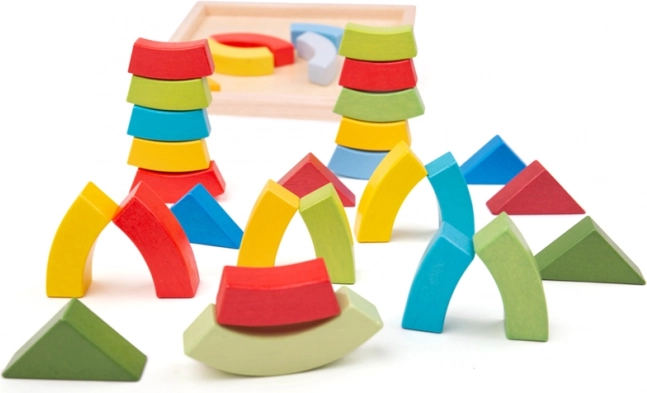 De houten bogen en driehoeken van BIGJIGS TOYS zijn ideaal voor vrij spel. Kinderen kunnen stapelen, bouwen en experimenteren met vormen en balans, waardoor ze op een natuurlijke manier verbeeldingskracht en logisch denken ontwikkelen. De praktische houten basis maakt opbergen en vervoeren gemakkelijk.