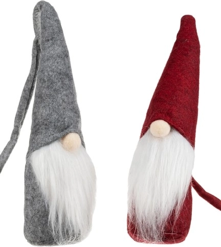 Twee schattige gnomes met lange baarden en spitse mutsen zijn gemaakt van hoogwaardig vilt en kunststof. Ze voelen prettig aan en dankzij de interne verzwaring staan ze stevig op een vlak oppervlak, zodat je ze eenvoudig op een plank, dressoir of bureau plaatst.