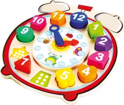 De klok ontwikkelt fijne motoriek, logisch denken en visuele waarneming. Dankzij de robuuste houten afwerking is hij duurzaam en geschikt voor dagelijks spel, thuis en in de kleuterklas. Een uitstekende keuze voor kinderen vanaf 2 jaar die kennismaken met de wereld van vormen, kleuren en cijfers.
