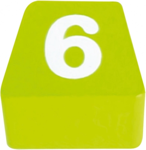 Verschillend gekleurde stukjes met cijfers en puntjes aan de onderzijde ondersteunen het herkennen van vormen, kleuren en het eerste rekenen.
