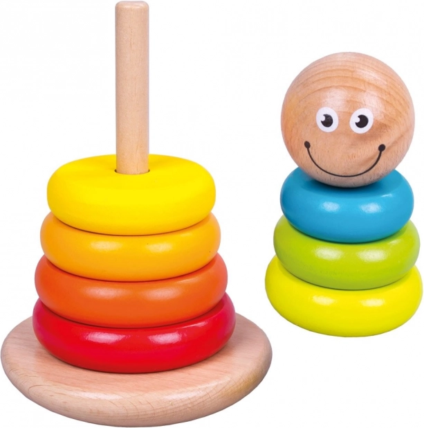 Klassiek houten speelgoed voor de allerkleinsten dat de fijne motoriek, oog-handcoördinatie en kleurenherkenning ontwikkelt. De gekleurde ringen zijn eenvoudig over de houten staaf te schuiven en het vrolijke gezichtje maakt het spelen extra leuk. Gemaakt van hoogwaardig hout, voldoet aan de Europese veiligheidsnormen en is ideaal voor kinderen vanaf 18 maanden.