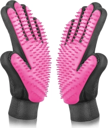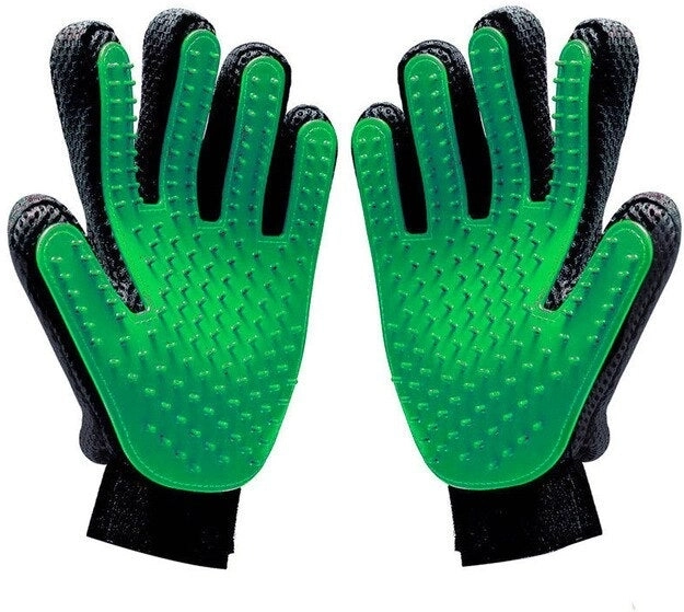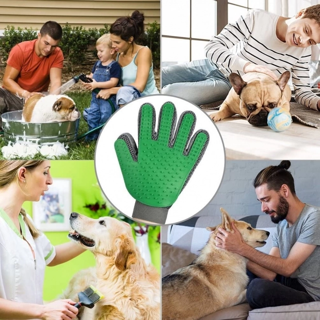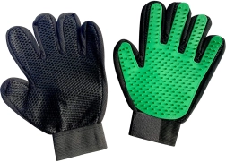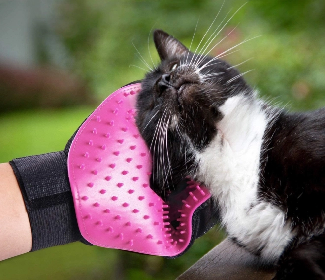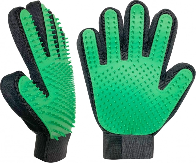 Dichte rubberen noppen bedekken het volledige actieve oppervlak van de handschoen, vangen losse haren op en masseren tegelijkertijd aangenaam de huid van het dier.
