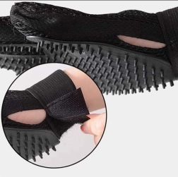 De verstelbare klittenbandsluiting zorgt voor stabiliteit en een goede pasvorm om de hand. De handschoen past op handen van verschillende maten en glijdt niet tijdens het kammen.