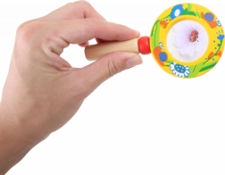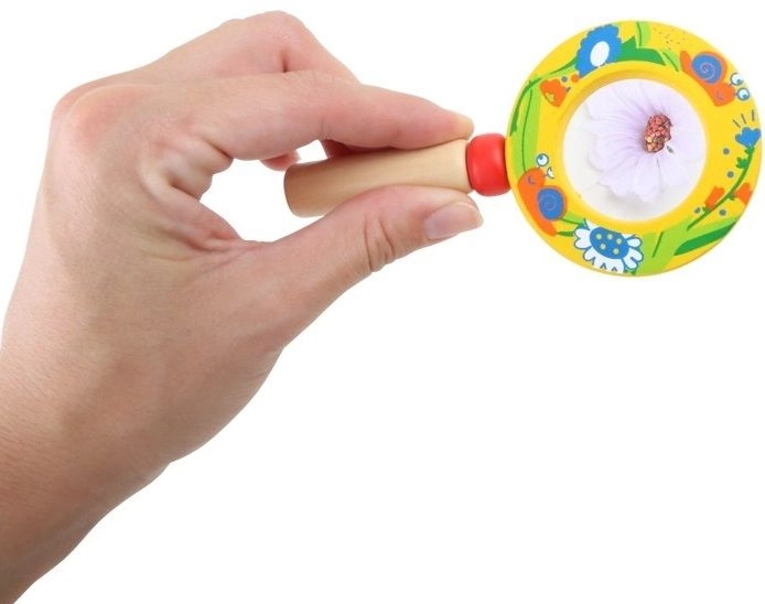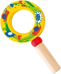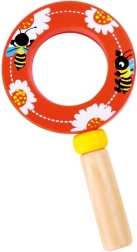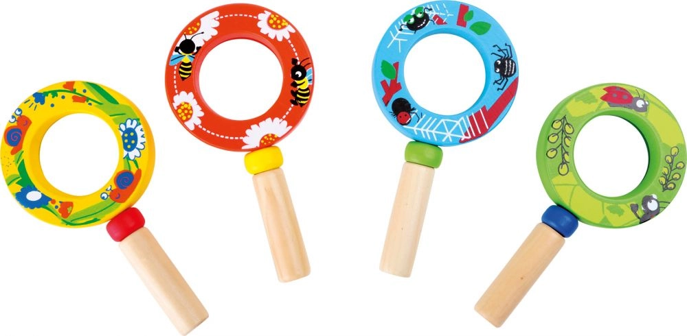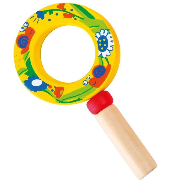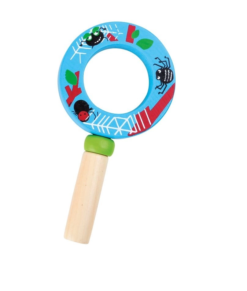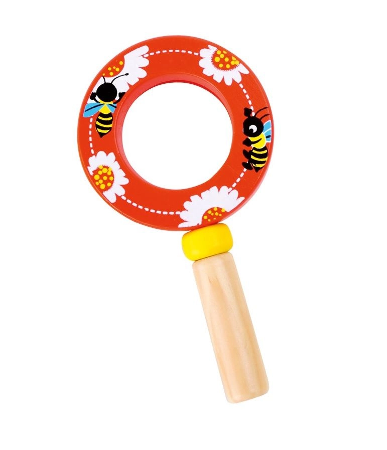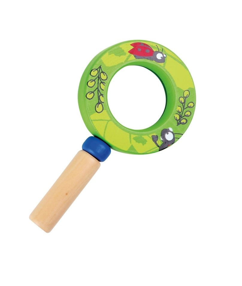 Deze kwalitatieve kinderloep combineert een stevig houten handvat met een lichte kunststof lens zodat hij veilig en comfortabel is voor kleine handen. Vrolijke illustraties van insecten en bloemen motiveren kinderen om details van de wereld om hen heen te ontdekken – van bloesems tot kleine kevertjes.
