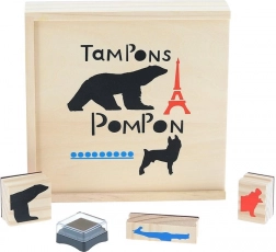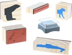 Deze design-stempelset is gebaseerd op de strakke lijnen van de sculpturen van François Pompon en biedt in de reinterpretatie van Gérald Lo Monaco een unieke artistieke ervaring. Kinderen kunnen hoofden en lichamen van een giraffe, nijlpaard, panter of beer combineren en zo nieuwe, imaginaire dieren creëren.
