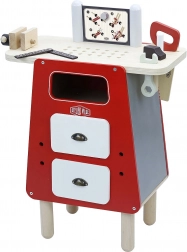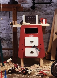 Vilac Mijn werkbank is ontworpen zodat kinderen veilig kunnen experimenteren en hun mechanische vaardigheden kunnen ontwikkelen. Dankzij klittenband kunnen kinderen hout „zagen”, houten spijkers met de hamer inslaan en met behulp van een schroevendraaier en sleutel verschillende onderdelen monteren en demonteren. Dit speelgoed stimuleert verbeelding, geduld en vindingrijkheid.