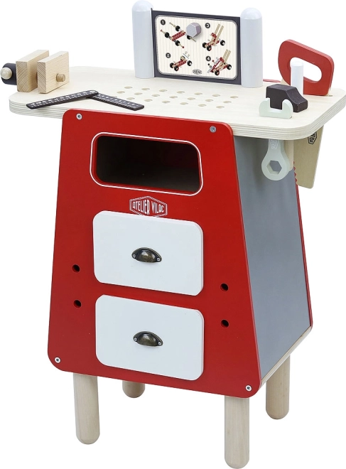 Deze dubbelzijdige werkbank met gereedschap, gecreëerd door het Atelier van Vilac, bevat maar liefst 76 accessoires en biedt de mogelijkheid om 4 modulaire constructies te bouwen. Deze collectie is ideaal voor creatieve kinderen die houden van knutselen en DIY-projecten.