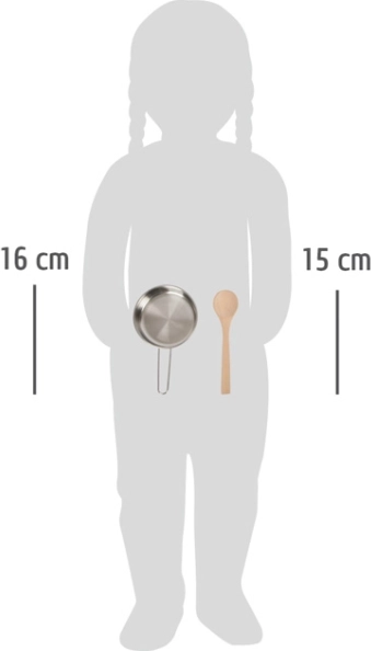 De pan met afneembaar deksel draagt bij aan realistische speelscenario’s en stimuleert de verbeelding. De houten lepel samen met metalen tools zoals de spatel en garde bieden een brede keuze aan speelmogelijkheden. De stoffen ovenwant en de pannenonderzetter geven een authentiek tintje en dragen bij aan de veiligheid tijdens het spel.