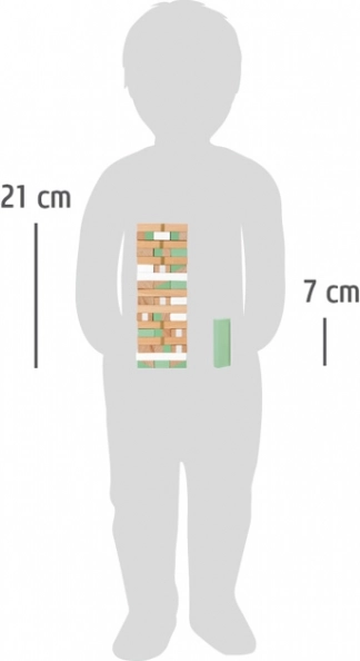 Kinderen vanaf 3 jaar kunnen het spel al spelen en je kunt het aanpassen aan de leeftijd en vaardigheden van de spelers – speel klassiek, of voeg de houten dobbelsteen toe voor nieuwe uitdagingen. De 2-in-1 verpakking vergemakkelijkt bovendien het opbouwen en veilig opbergen van de blokken.