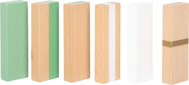 Trendy pasteltinten, gouden details en natuurlijk hout maken van dit spel een stijlvol item dat perfect past in elk interieur.