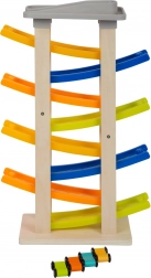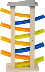 Maak kennis met deze unieke racebaan met acht hellingen, die elk klein raceautootje zal fascineren. Bovenop de baan is een handige parkeergarage voor vier houten autootjes. Dit speelgoed ondersteunt akoestische waarneming dankzij de klapperende geluiden die de autootjes maken tijdens het afdalen. Dankzij de brede basis is de baan uitzonderlijk stabiel en veilig.