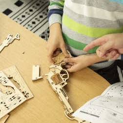 Met de Corsac revolver van Robotime geniet je van plezier tijdens het monteren, schieten en tentoonstellen van het voltooide model. Dankzij de gedetailleerde handleiding kun je het binnen één tot twee uur monteren.