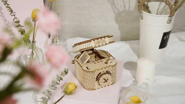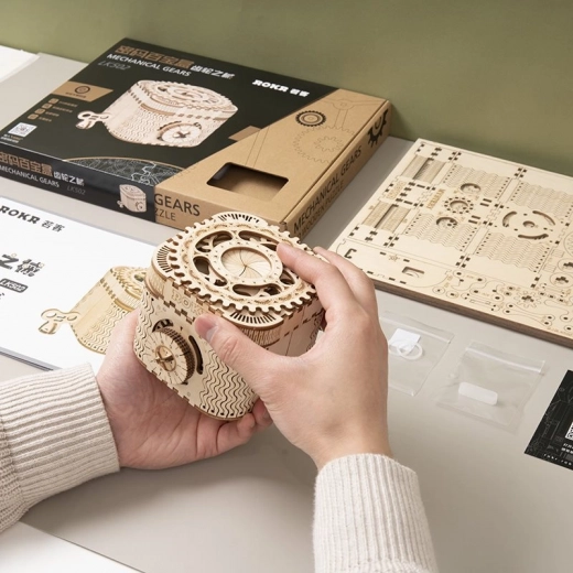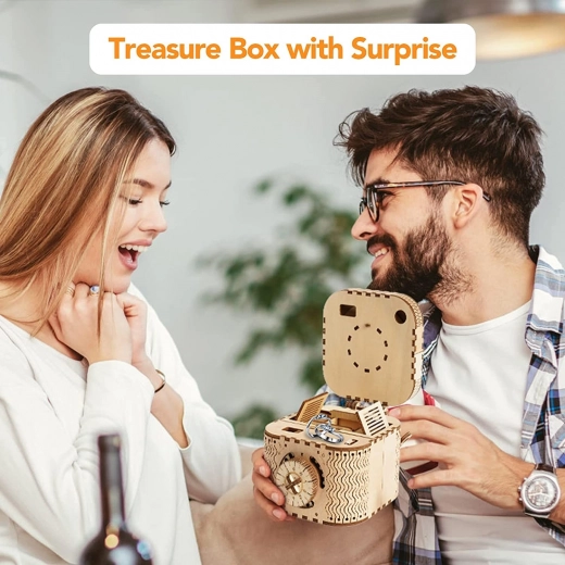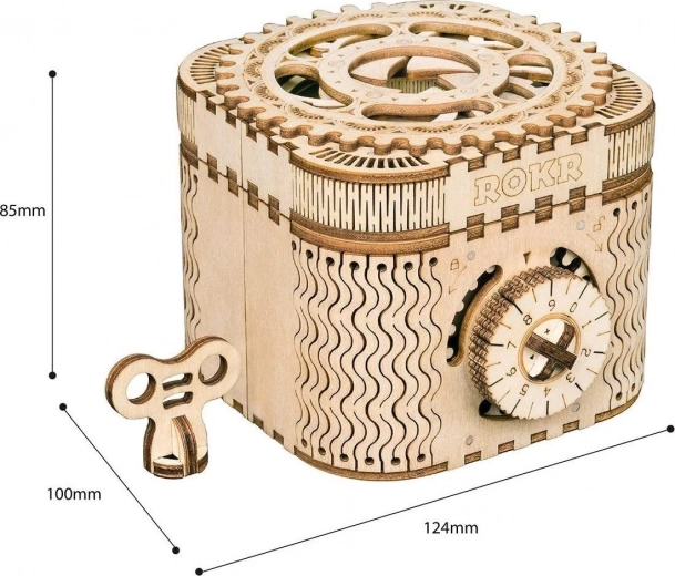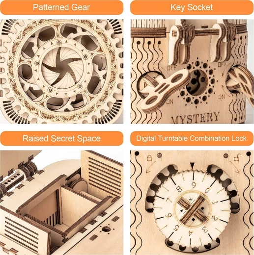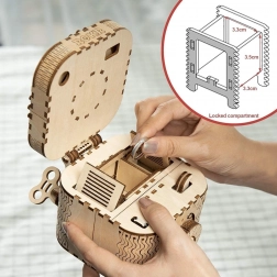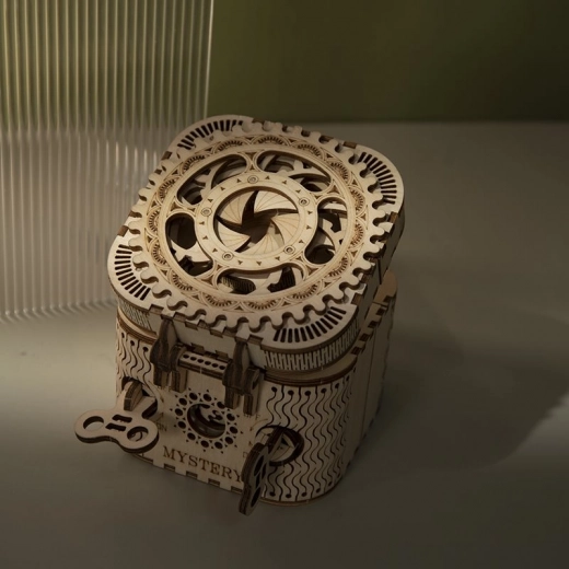 Het houten mechanische puzzelsieradenkistje van multiplex is een uniek cadeau voor doe-het-zelf liefhebbers en luxe interieurdecoratie. Het samenstellen van het kistje is van gemiddelde moeilijkheid en vormt een geweldige uitdaging met 123 nauwkeurig uitgesneden stukken. Het kistje bevat twee compartimenten, waaronder het hoofdcompartiment dat beveiligd is met een driecijferige code, die door de gebruiker kan worden gekozen uit veel combinaties.