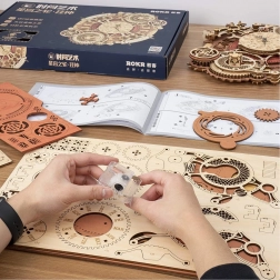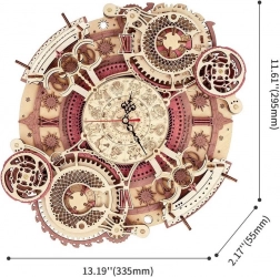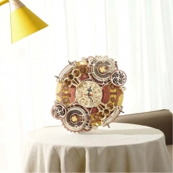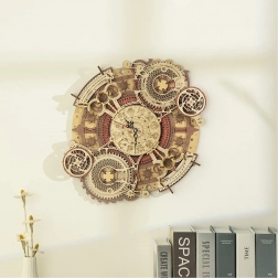 Ontdek de kunst van het klokkenmaken met onze 3D houten mechanische puzzel. Dit model blinkt uit in zijn complexiteit en precisieafwerking, wat de aandacht trekt van alle doe-het-zelvers en steampunkontwerp liefhebbers. Ideaal om aan de muur te hangen, biedt dit model esthetisch en functioneel gebruik, met dank aan de elektrisch aangedreven klok en decoratieve kalender.