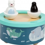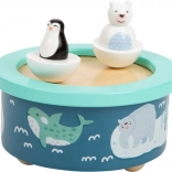 De muziekdoos Arctic met arctisch thema biedt kinderen een rustgevend Engels wiegelied. De figuren van de ijsbeer en de pinguïn draaien rond op het ritme van de melodie, wat zorgt voor een visueel aantrekkelijke ervaring. Dankzij de afneembare houten figuren met magneet kun je de muziekdoos eenvoudig aanpassen aan je smaak.