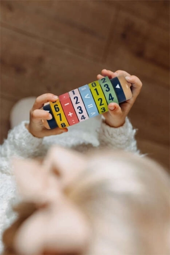 De cilinder is gemaakt van hoogwaardig hout en past dankzij het compacte formaat van 14 × 5 × 5 cm makkelijk in een rugzak. Ideaal voor kinderen vanaf 6 jaar, voor oefenen thuis of als aanvulling op het onderwijs. Leren verandert zo in een leuke game die motiveert om getallen en basisrekenkundige bewerkingen te ontdekken.