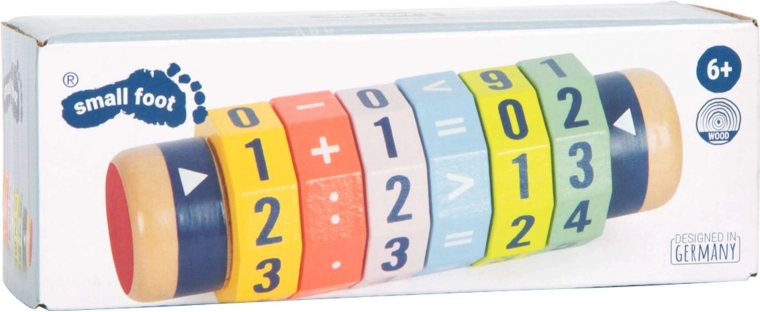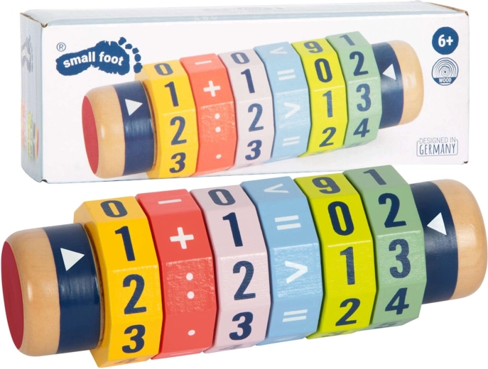 Ontdek een leuke weg naar wiskunde. De houten cilinder met zes draaibare ringen laat kinderen eenvoudige en complexere vergelijkingen en getalvergelijkingen maken. Dankzij de heldere kleuren en opvallende cijfers leren kinderen spelenderwijs en versterken ze hun fijne motoriek en concentratie.