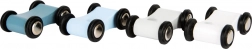 Bevat 4 autootjes (1 naturel, 3 gekleurd). De rubberen wieltjes zorgen voor een stille, soepele en snelle rit over de banen.