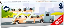 De set bevat een vrachtwagen met oplegger en in totaal vier sportauto’s. Spelen bevordert oog-handcoördinatie, fijne motoriek en creatief verhalen verzinnen. Dankzij hoogwaardige materialen en glad afgewerkte randen is het speelgoed geschikt voor kinderen vanaf 3 jaar.