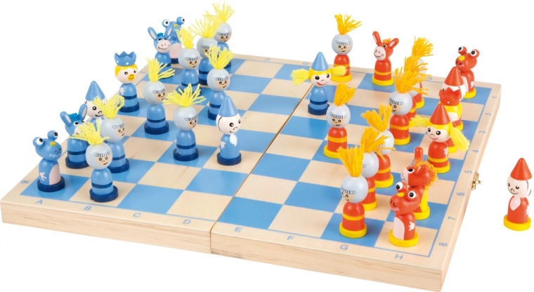Ontdek schaken dat kinderen echt leuk vinden! Het massieve houten bord met blauw-natuurlijke velden en speelse stukken blinkt uit in duurzaamheid en overzichtelijkheid. Dankzij de opvouwbare constructie dient het ook als cassette voor veilig opbergen van de onderdelen – alles bij de hand en klaar voor een snel potje.