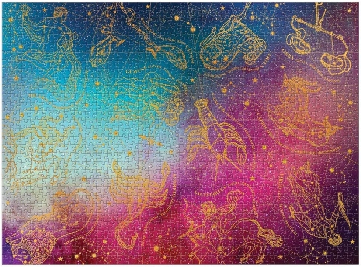 Galison puzzel Sterrenbeelden dierenriem, met 1000 stukjes, biedt de perfecte uitdaging voor liefhebbers van puzzels en astrologie. Elk stukje is bedrukt met niet-giftige inkten en past uniek in elkaar, wat bijdraagt aan de ontwikkeling van logisch denken en fijne motoriek: