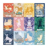 Elk sterrenbeeld is uniek weergegeven en brengt de essentie van het teken over in een speelse kattensfeer.