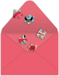 De ansichtkaartpuzzel Veel geluk is een lief, vindingrijk en praktisch cadeautje in één. Hij komt volledig gelegd aan, zodat je meteen je boodschap op de achterkant kunt schrijven. Daarna haal je de stukjes eenvoudig uit elkaar, stop je ze in de meegeleverde envelop en verstuur je het – de ontvanger “legt” de boodschap tijdens het puzzelen weer in elkaar.