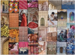 De puzzel toont een kleurrijke verscheidenheid aan culturele elementen uit India. Geniet van het samenstellen van elk stukje van deze prachtige mozaïek.