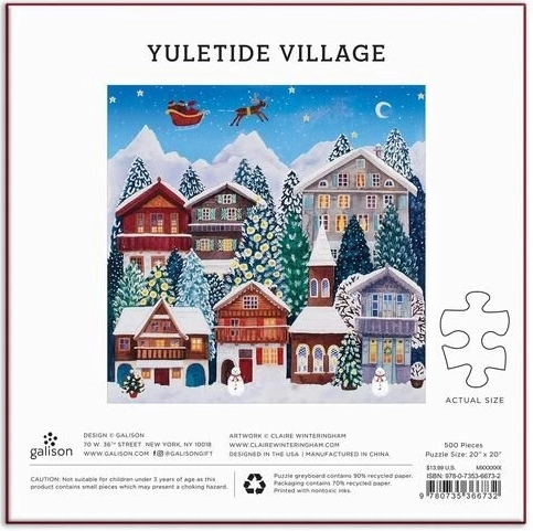 Deze Kerstpuzzel bevat 500 stukjes met het feestelijk dorp motief. Elk stukje is gemaakt van gerecycled papier en bedrukt met niet-giftige inkten. Bij het puzzelen geniet je van een combinatie van logisch denken en ontspanning.