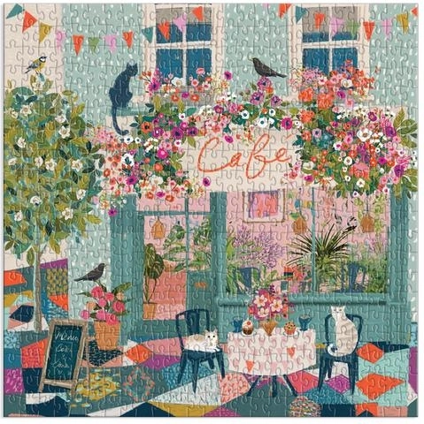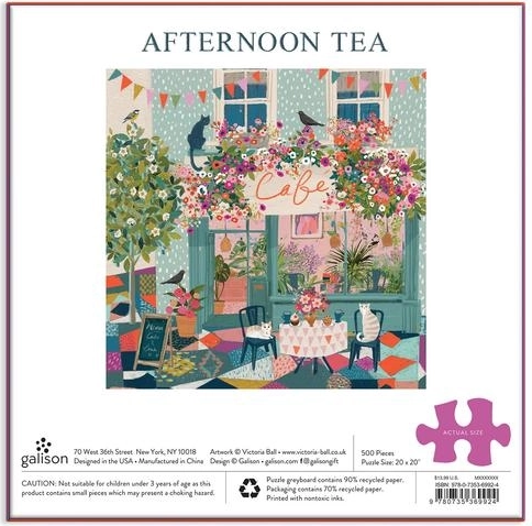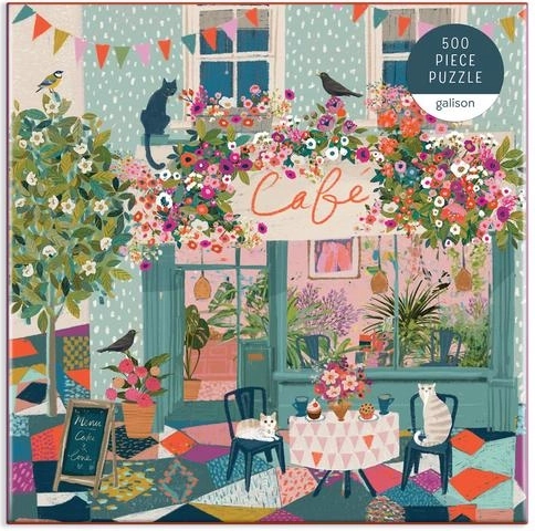 Ontdek de charmante wereld van GALISON met het motief “Middagthee in het café”. De illustratie van bestsellerauteur en kunstenares Victoria Ball vangt de knusse sfeer van een stads café, versierd met bloeiende planten, waar schattige katten spelen en vogels rondfladderen. De puzzel zit in een stevige doos met een matte afwerking, ideaal ook als cadeau.