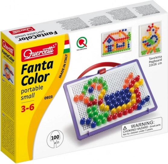 Quercetti Fanta Color draagbare mozaïek is een innovatief speelgoed dat niet alleen plezier brengt, maar ook educatieve waarde. Met deze set kan uw kind verschillende afbeeldingen en patronen maken, waardoor creativiteit en fijne motoriek worden ontwikkeld. De pinnetjes in verschillende kleuren zijn eenvoudig in de gaatjes van het bord te plaatsen, wat concentratie en geduld stimuleert.