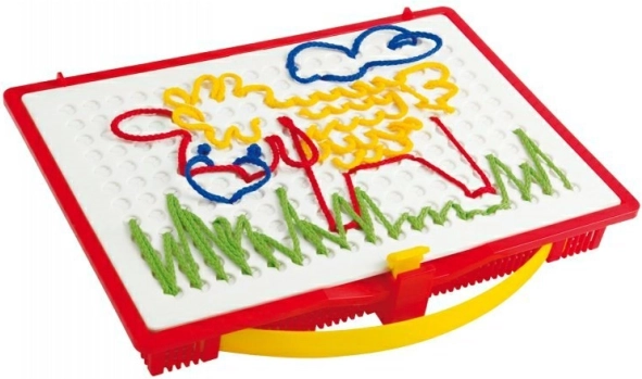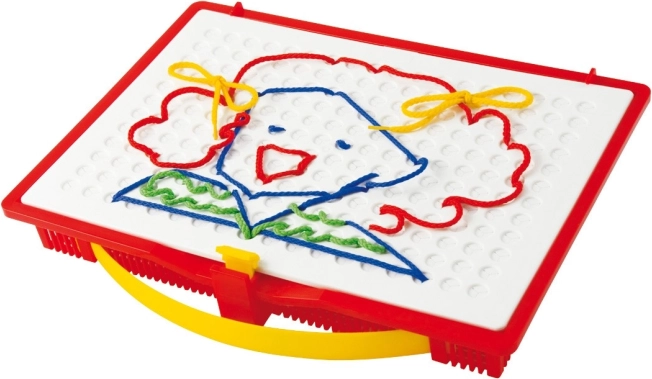 Ontdek de magie van creatief spel met de borduurset Quercetti Filò, die de verbeelding en fijne motoriek van kinderen bevordert. Met speciale pennen kunnen kinderen verschillende afbeeldingen maken door gekleurde koorden in de openingen van het speelbord te steken, wat hen vreugde en plezier brengt.